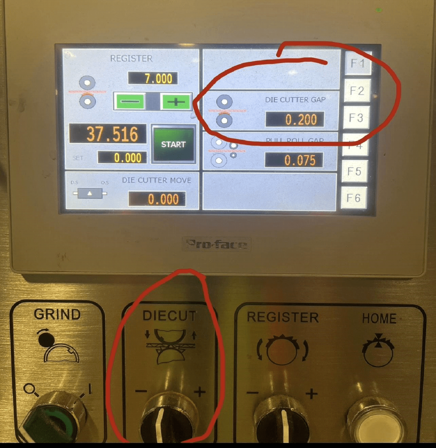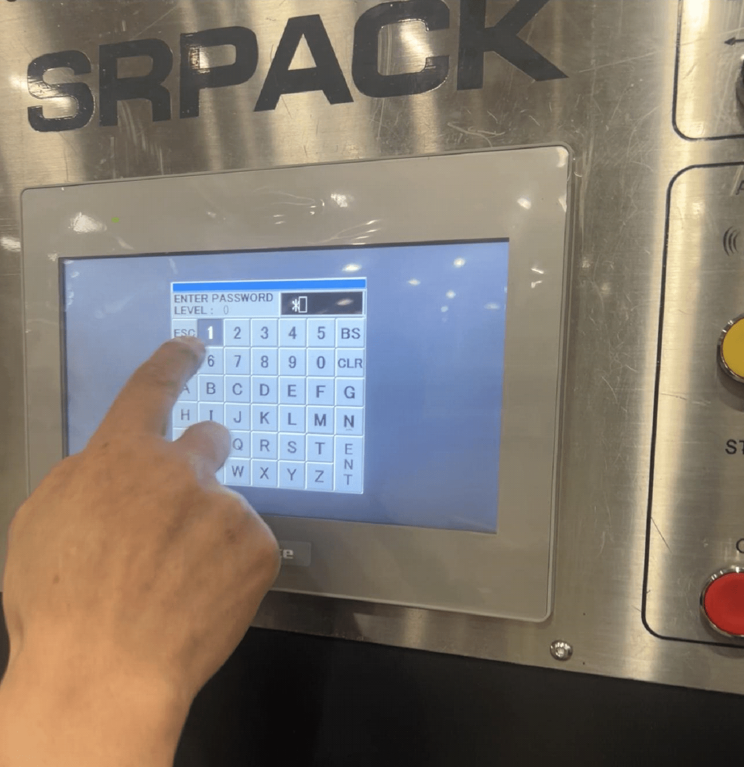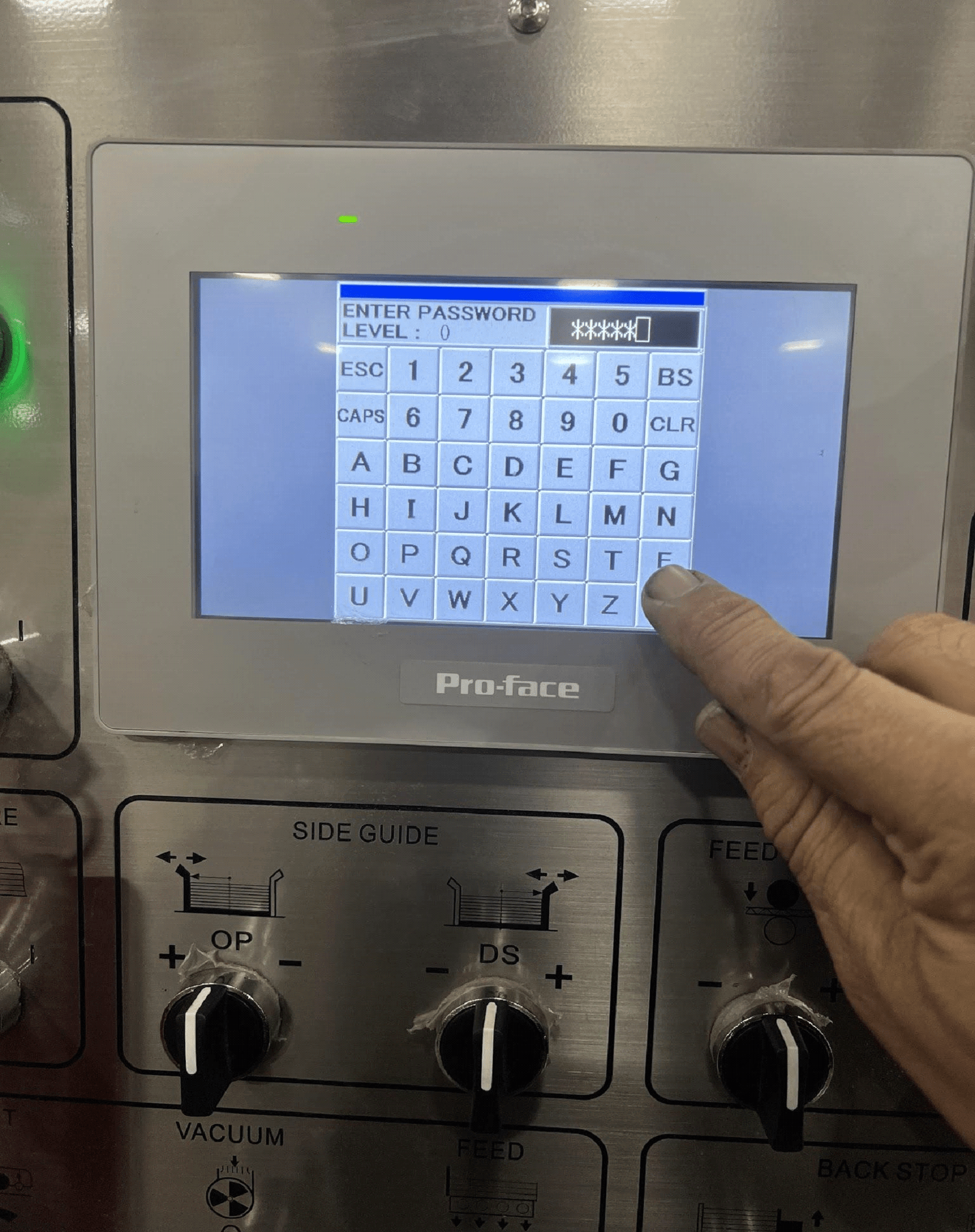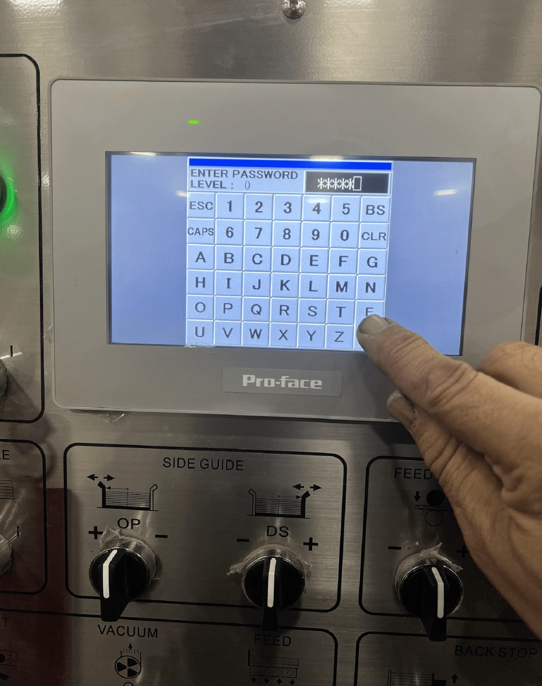 This is where you need to touch in order to access the password screen that you need to get to the proper spot so you can zero out and home your counter ejector. Touch between the F1 tab and the empty tab space next to it. Right in the middle of them both will take you to the password screen.