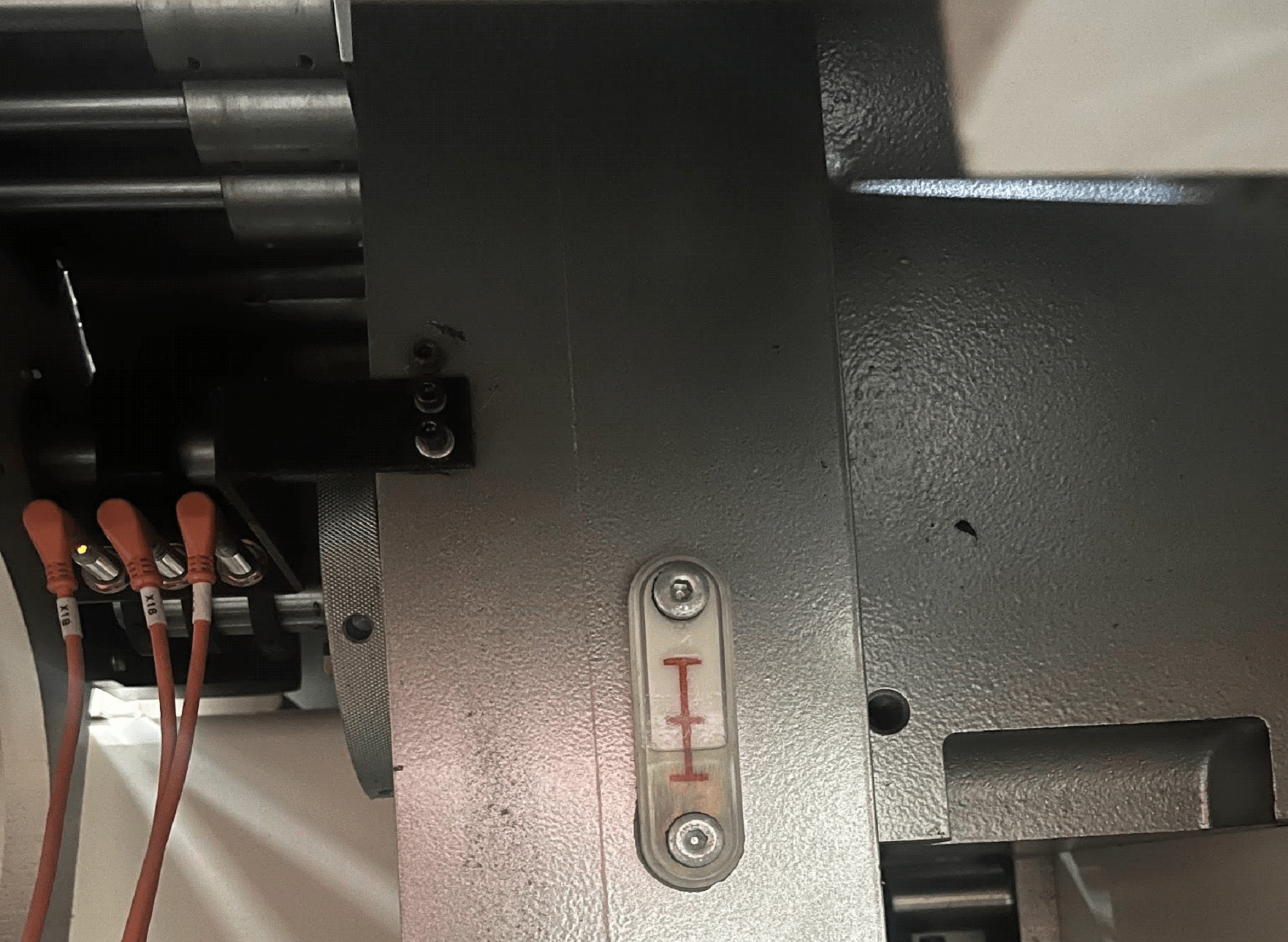 ⦁ Restarting after an emergency stop pull cord. Once that cord has been pulled, the small box at the end will show a yellow marking on the inside indicating that it has been pulled. You must push in the light blue plunger next to this and it will change the yellow marking to green again, meaning that it is now reset and ready to go. You now MUST GO BACK TO THE FRONT OF THE MACHINE and hit the orange OKAY button that starts the entire machine’s communications.