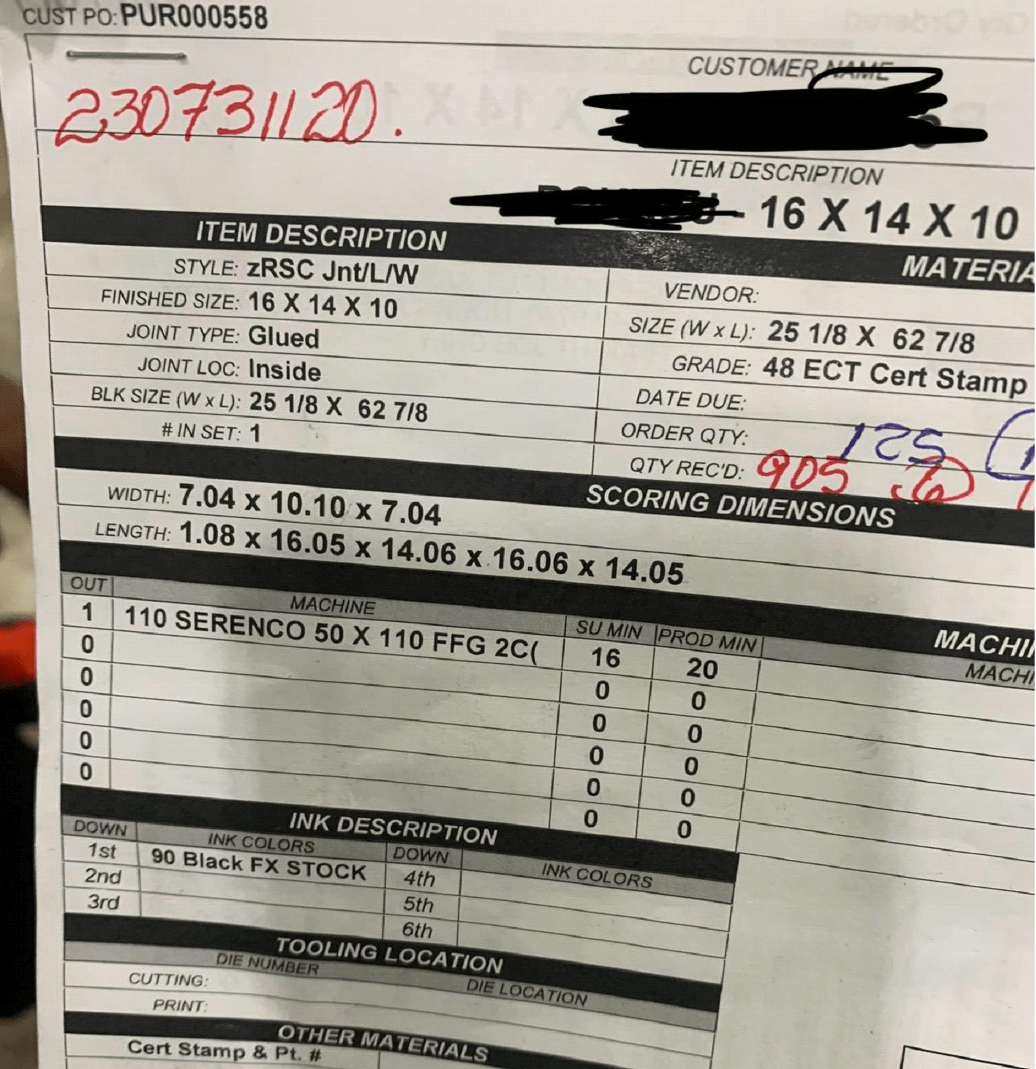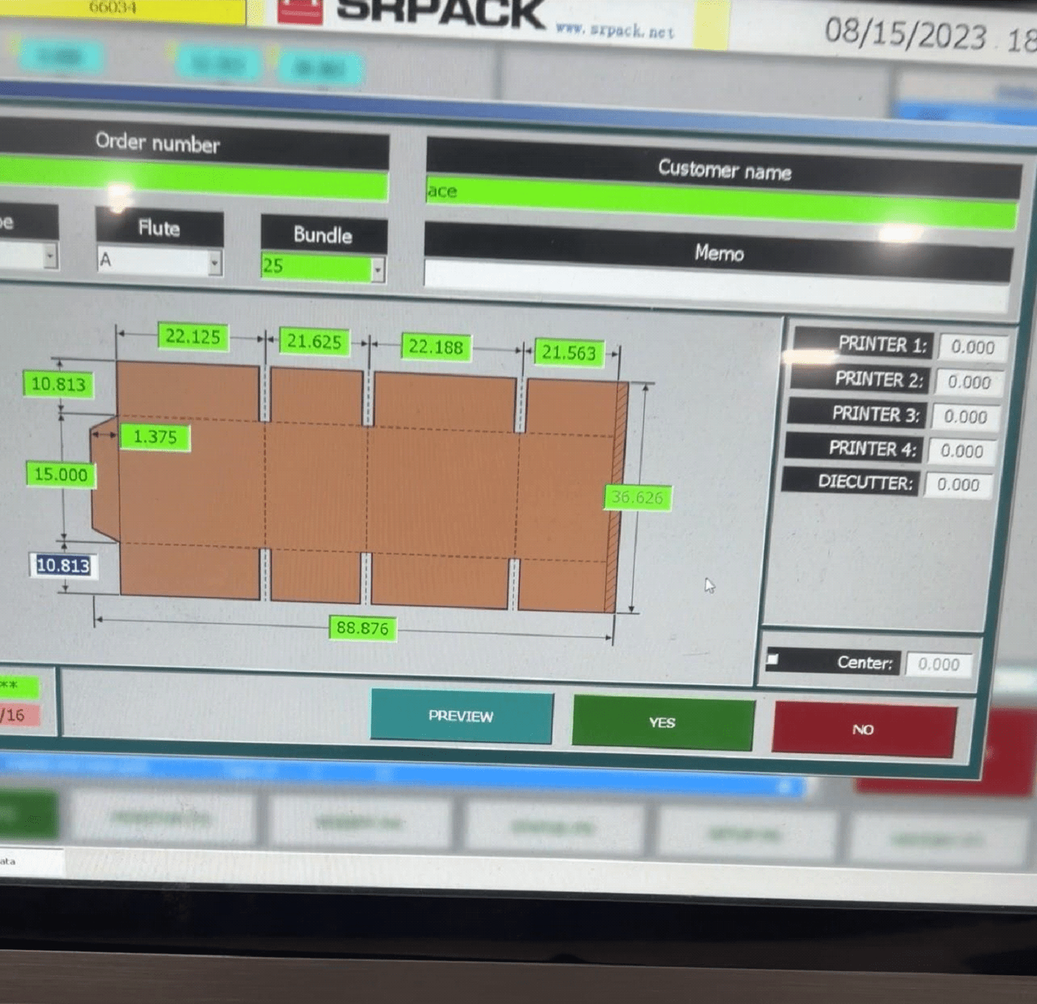 Get your ORDER that will be running on the machine. This will usually have the print layout for the current corrugated box. It should also contain information such as the type of board to be used, the print die numbers, colors, the die cutter board number, and any special notes for the customer.